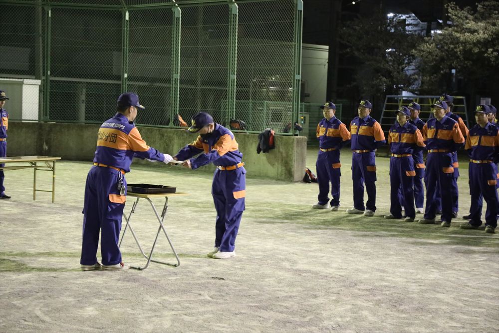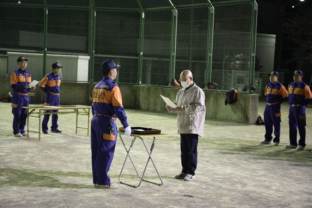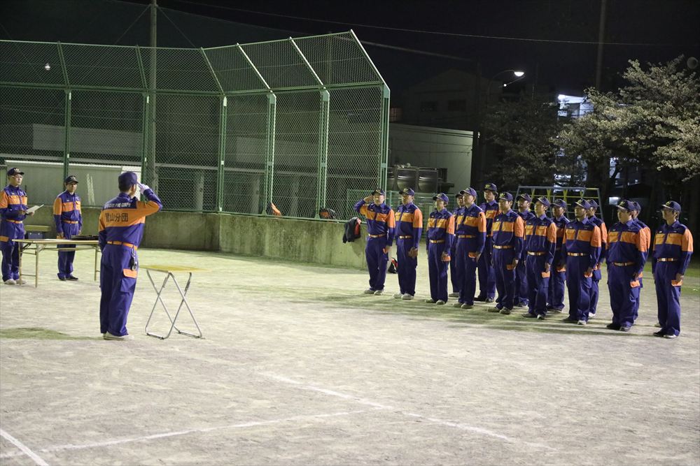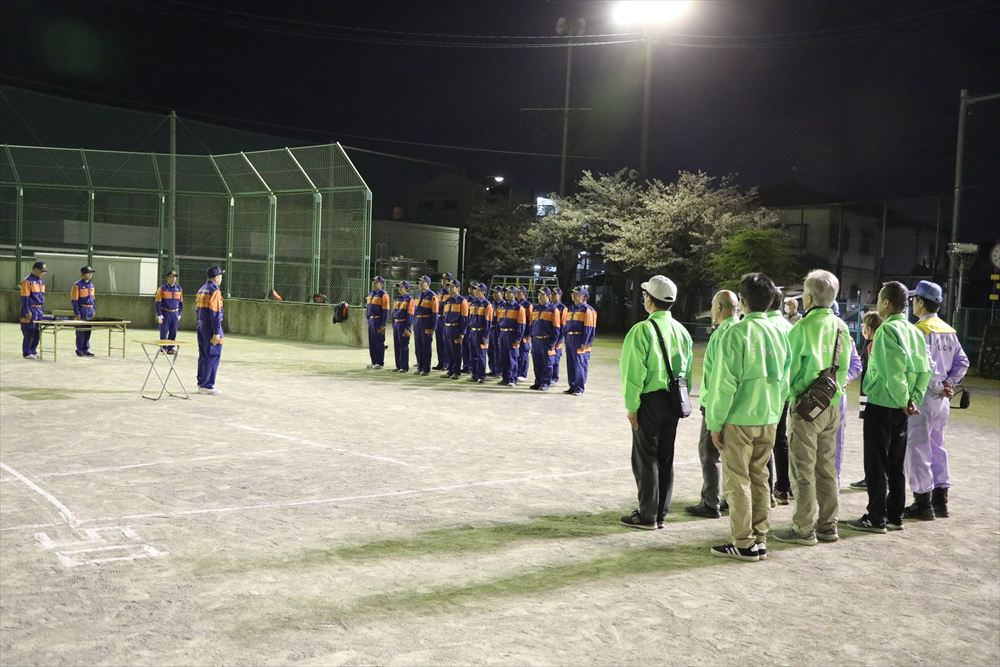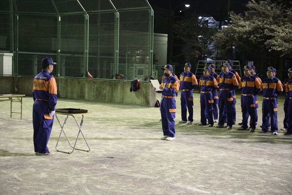 辞令交付式終了後には、団員の皆さんが部長の指示に従い、各個訓練に取り組まれました。今月は、特別点検に向けて、毎週木曜日午後8時~鷺山小学校グラウンドにて、訓練を実施される予定です。皆さんの激励ををお待ちしています。