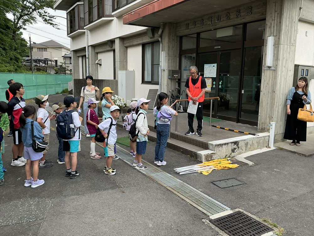 まず、この日の目標は、新しく建設された鷺山公民館・鷺山子ども館に設定され、みんなで鷺山の中を歩いていきました。