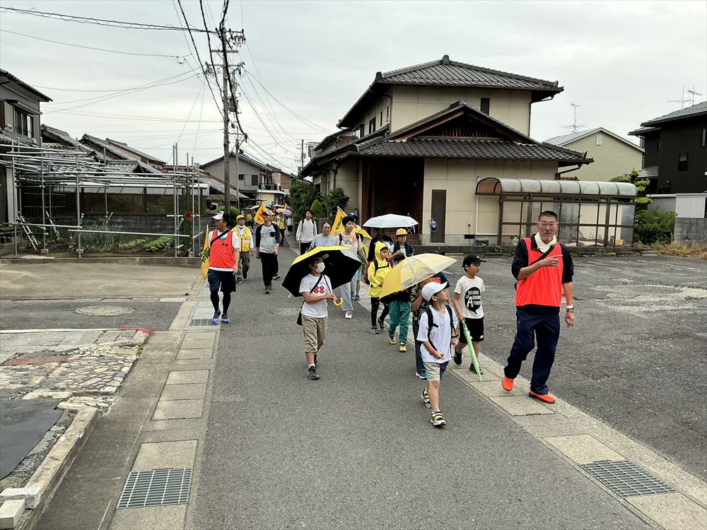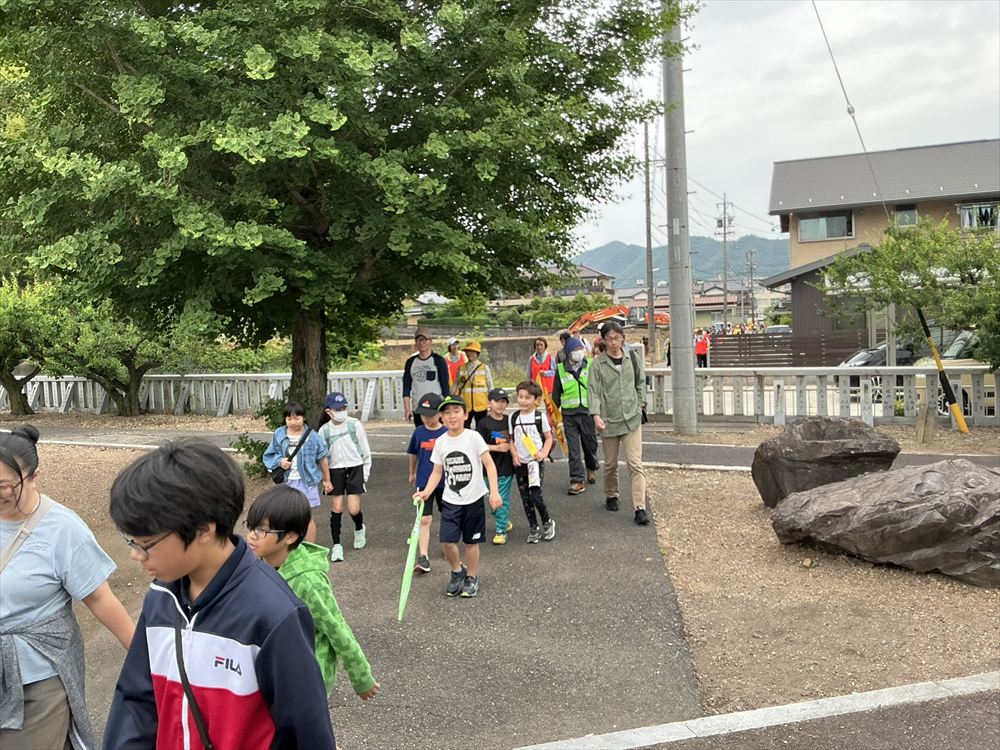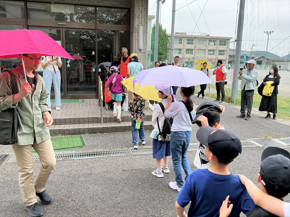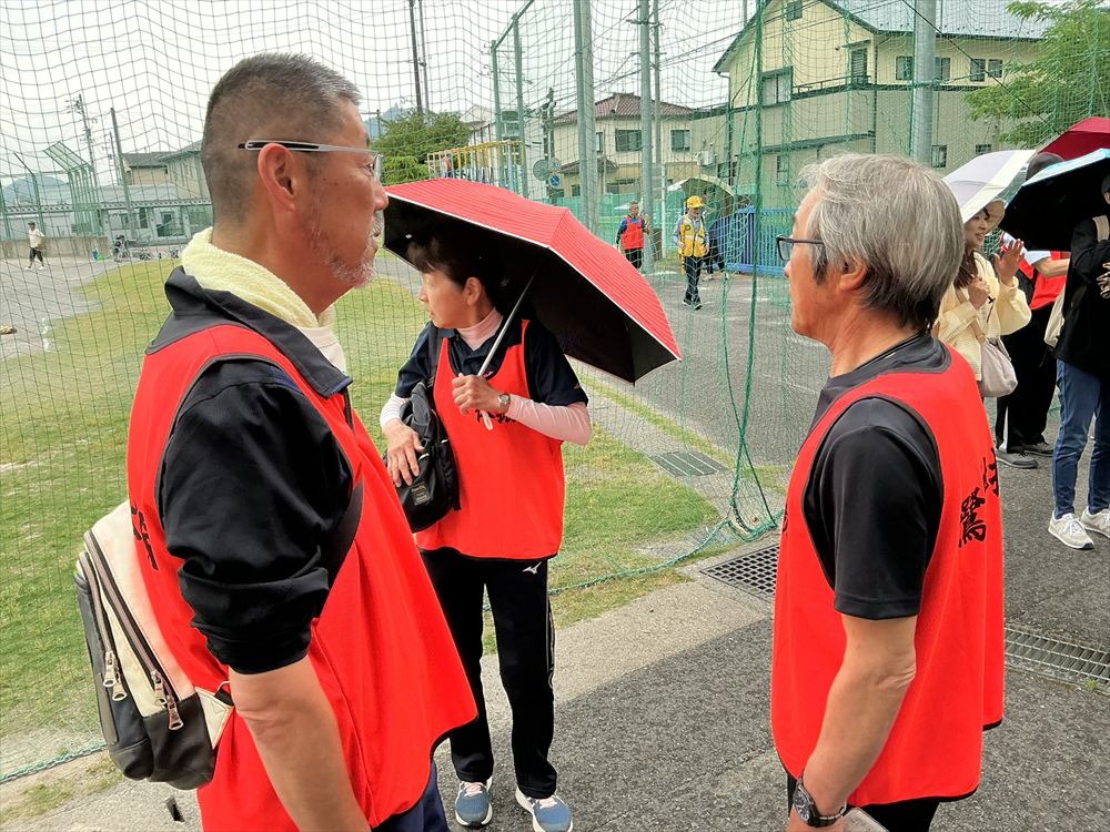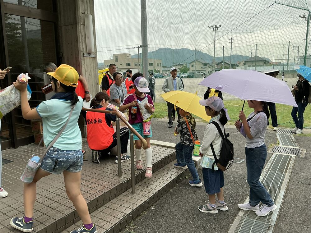 鷺山小学校に到着した後、さぎしも公園で準備しているレクリエーションが実施出来るか検討をしましたが、今後の天候の悪化を考慮して、この日の歩け歩け大会は終了となりました。