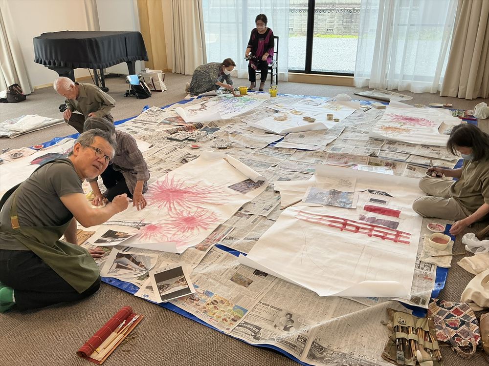 大きな行灯を飾る絵を描くのはなかなか大変そうですが、構図や彩りを考えながら、ステキな作品の作成を進めてくださっています。皆さん、お楽しみに!