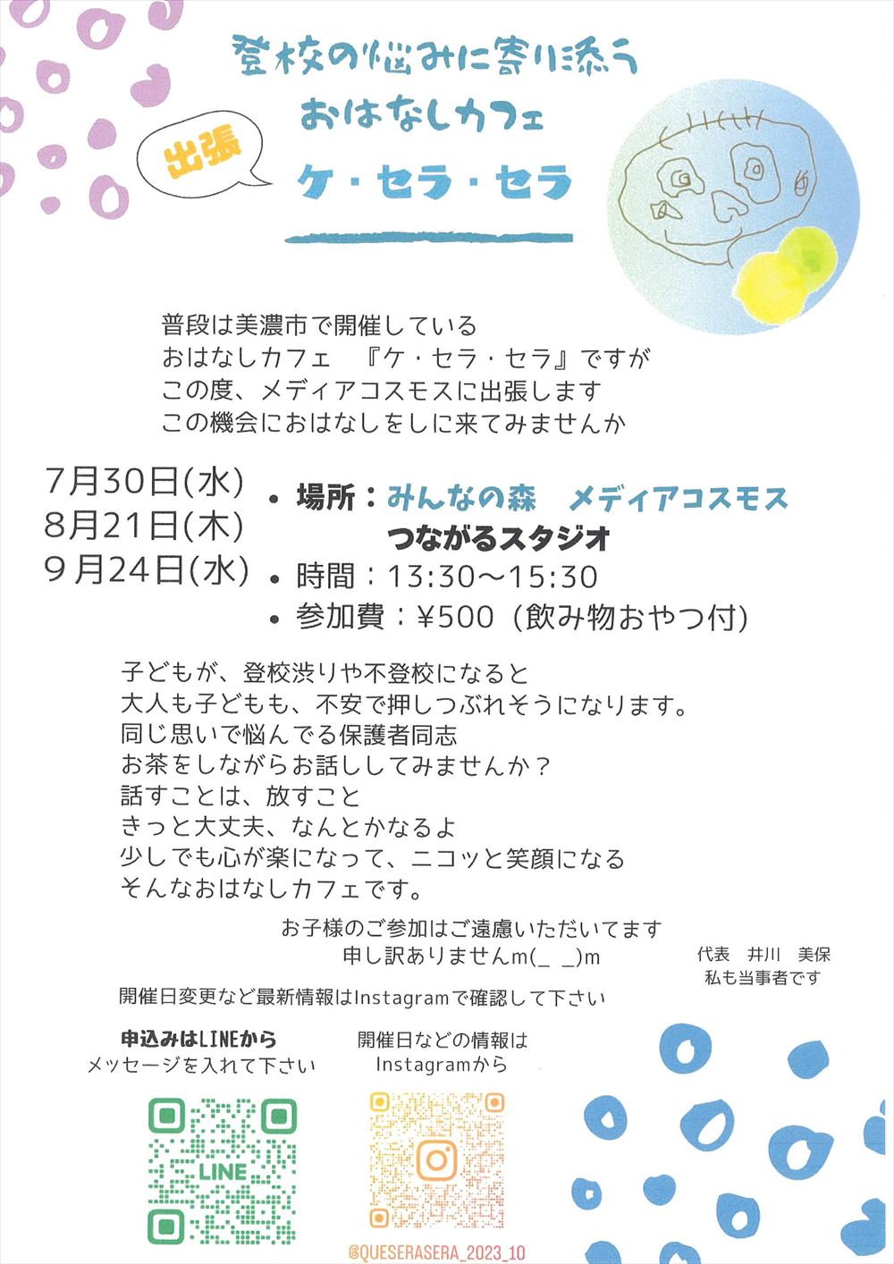 登校の悩みに寄り添うおはなしカフェ 出張ケ・セラ・セラ(令和7年7月30日、8月21日、9月24日開催)