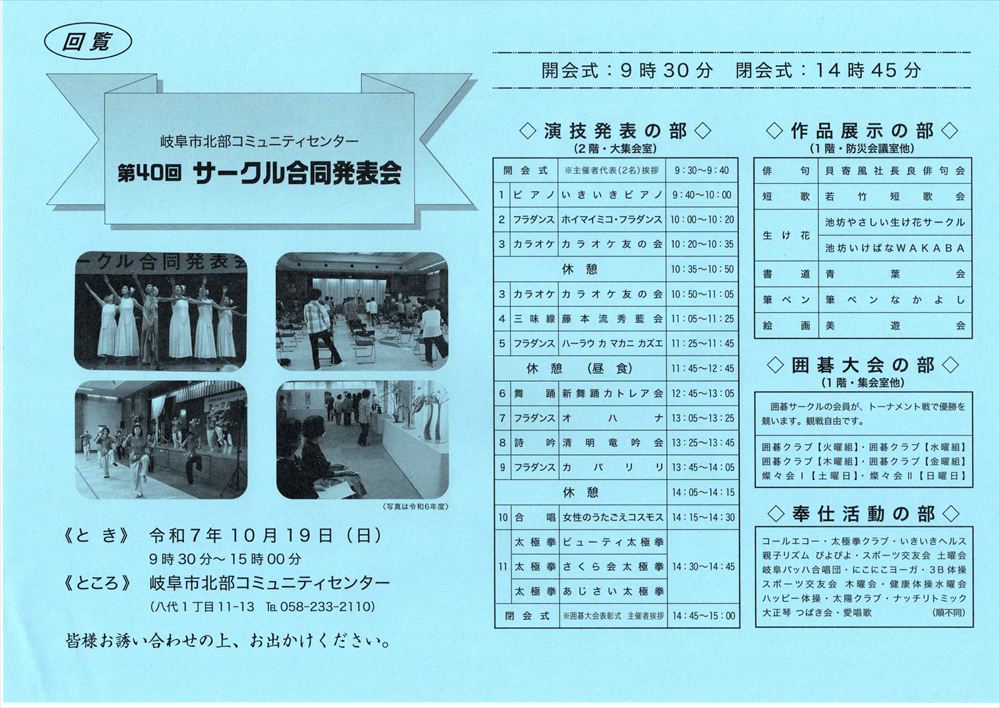 岐阜市北部コミュニティセンター 第40回 サークル合同発表会(令和7年10月19日開催)
