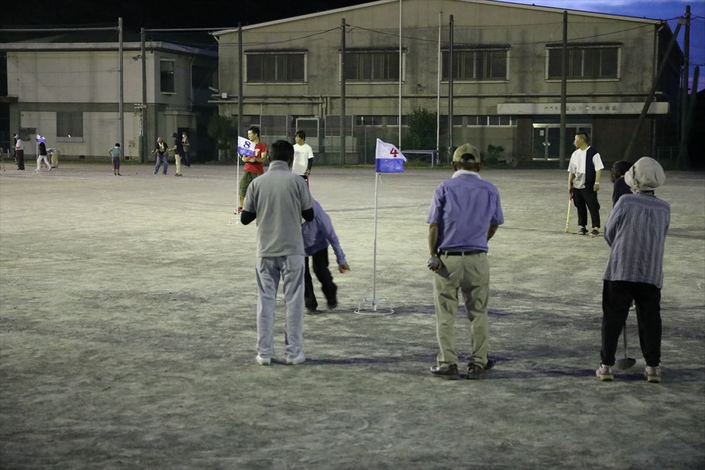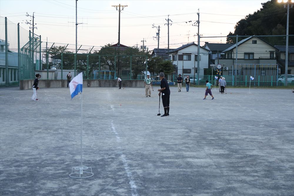 日頃からグラウンドゴルフを楽しんでいるベテランの参加者から、本日初めてチャレンジするビギナーまで、老若男女の皆さんが、ゴールポールめがけてショットを繰り広げていきました。ホールインワンを出す方もいれば、OBになる人、皆さんそれぞれで競技を楽しんでいました。