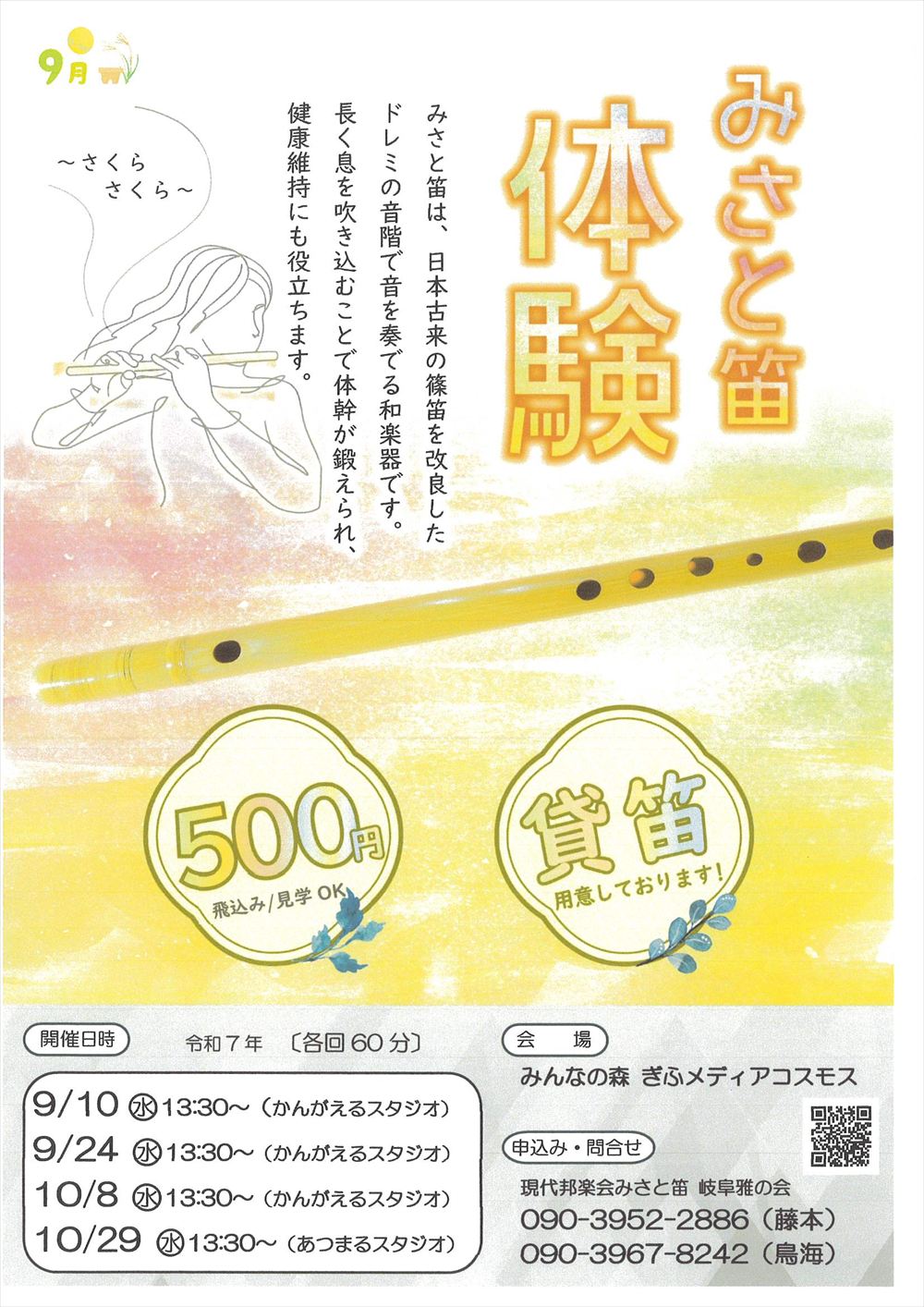 みさと笛体験(令和7年9月10日、24日、10月8日、29日開催)