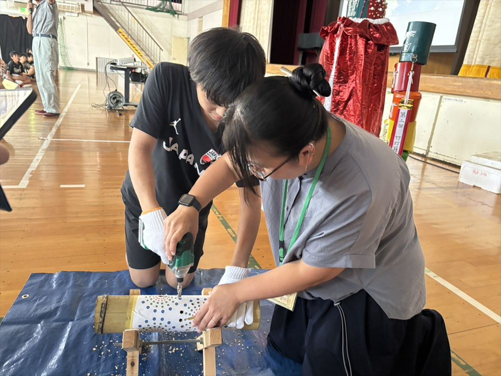 鷺山小学校児童の皆さんにも、竹灯籠の製作する方法の説明や、グランプリに関する説明がされ、希望する児童の皆さんには、竹灯籠の製作体験もしてもらいました。