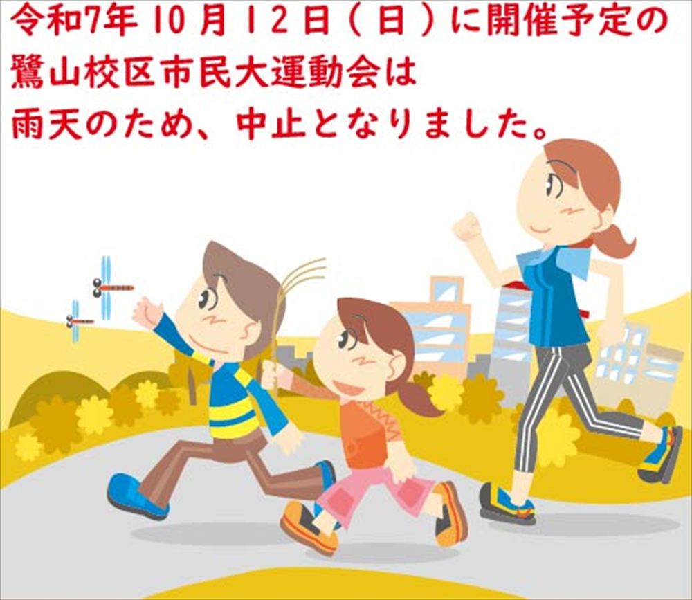 令和7年10月12日(日)開催の鷺山校区市民大運動会は、雨天のため中止となりました。