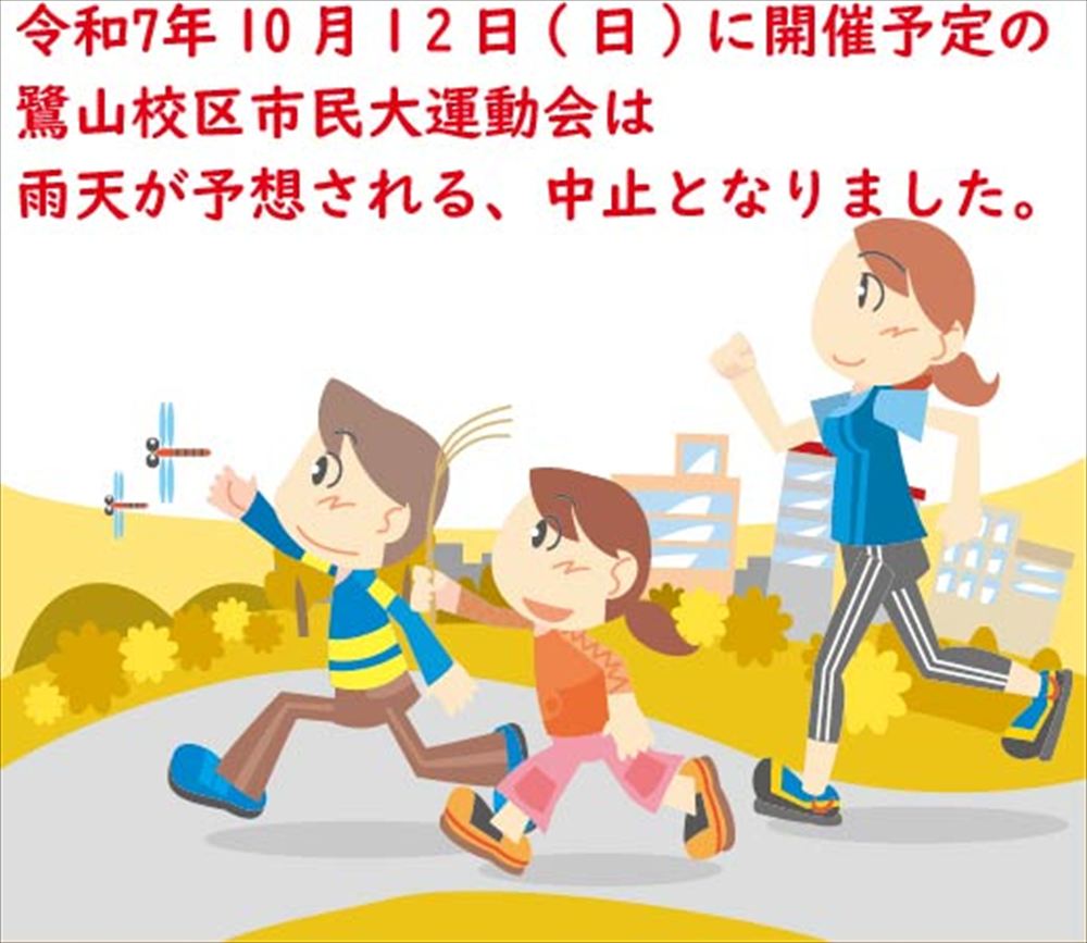 令和7年10月12日(日)開催の鷺山校区市民大運動会は、雨天が予想されるため中止となりました。