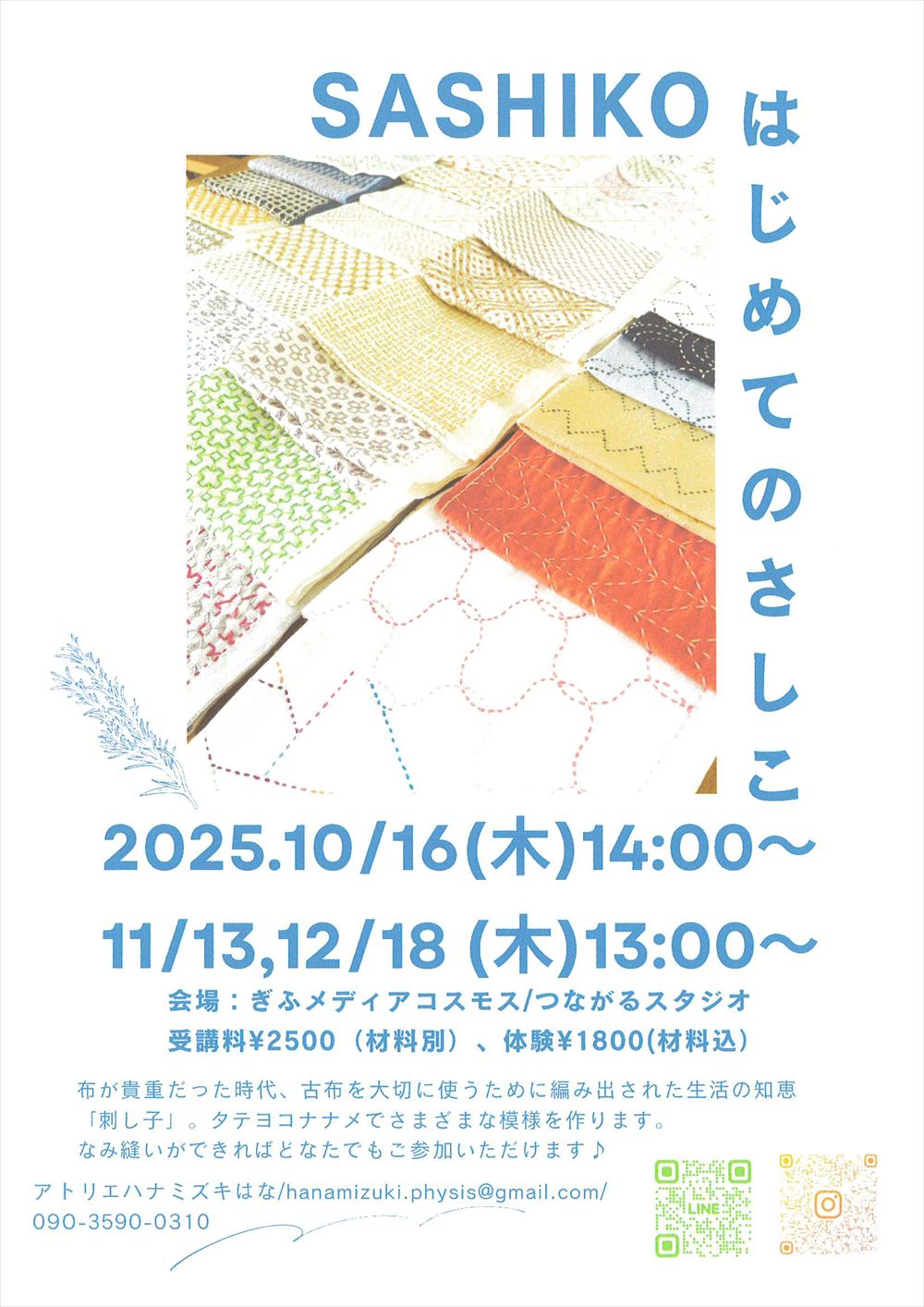 はじめてのさしこ(令和7年10月16日、11月13日、12月13日開催)