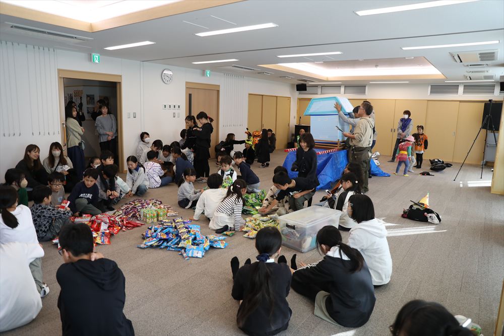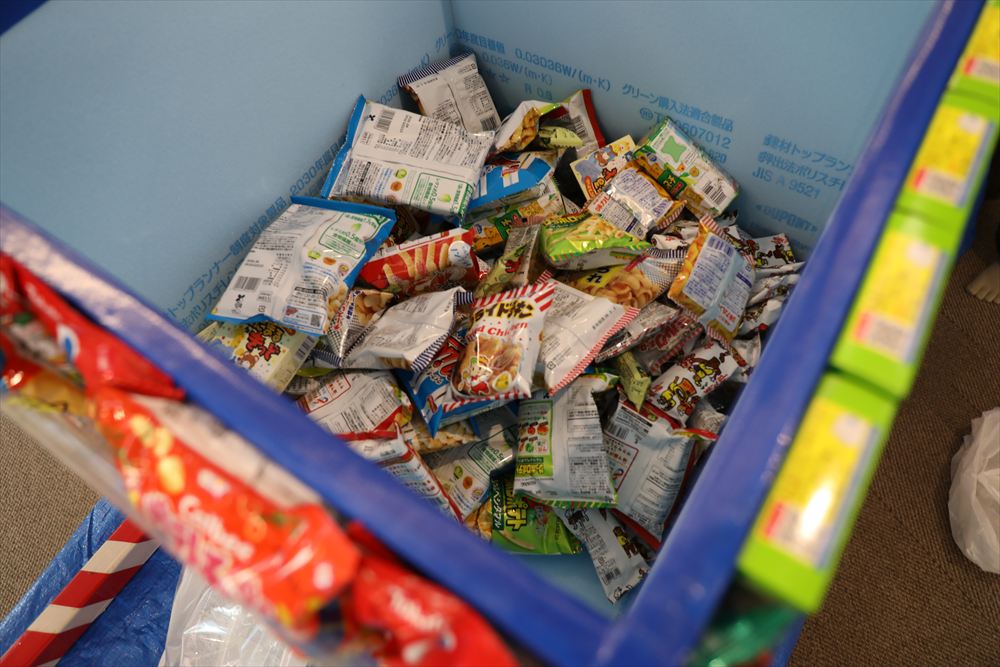 午前中に、参加した児童でお菓子みこしの制作に取り組みました。お菓子を貼り付ける面の貼り付け方を事前に考えて、どのようにデザインするのがいいのか、しっかり考えてから貼り付けていきました。