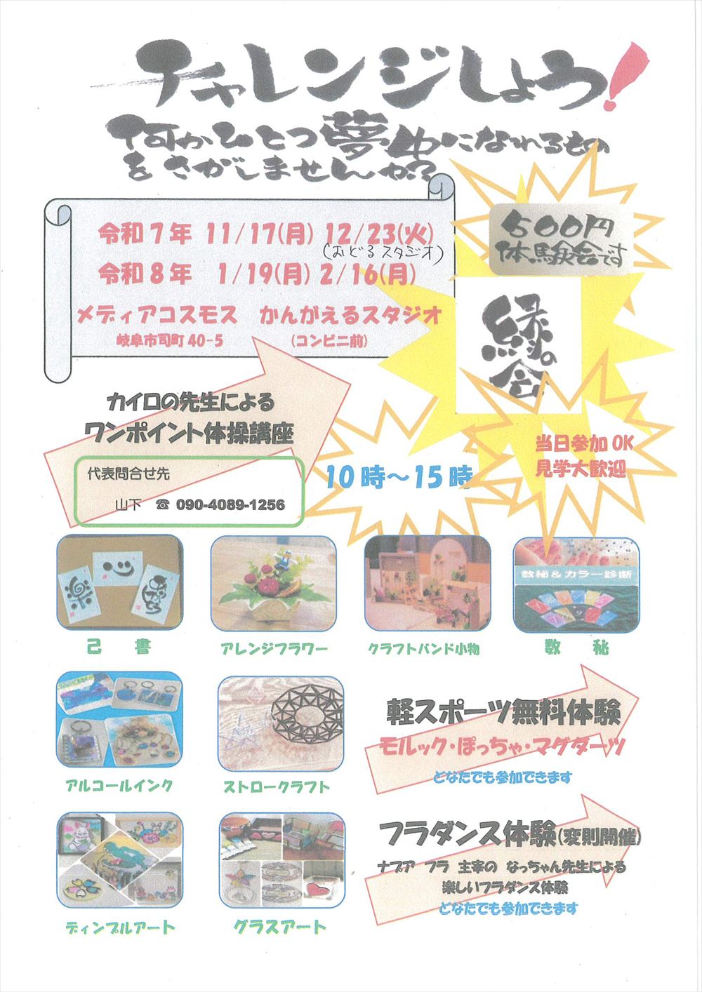 チャレンジしよう!何かひとつ夢中になれるものをさがしませんか?(令和7年11月17日、12月23日、令和8年1月19日、2月16日開催)
