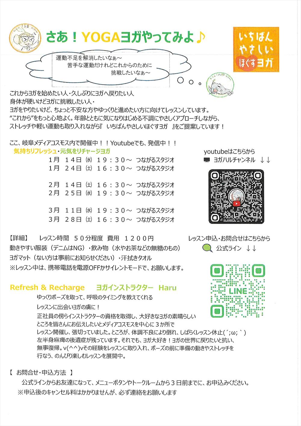 さあ!YOGAヨガやってみよ♪(令和8年1月14日、24日、2月14日、25日、3月11日、28日開催)