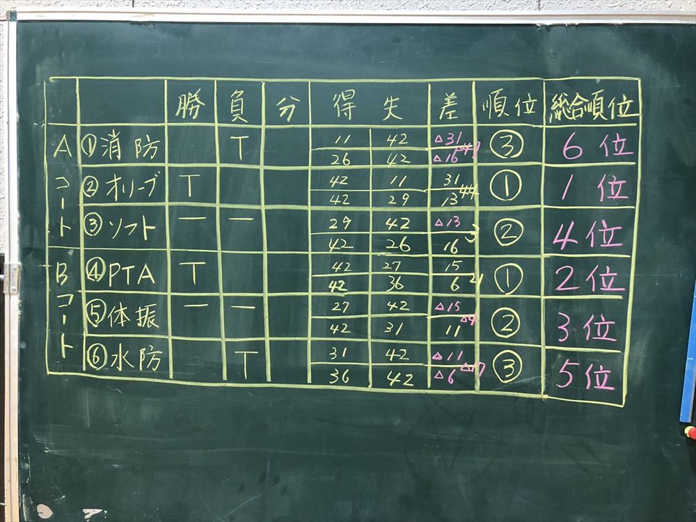 総合順位は、1位はチームオリーブ、2位が鷺山小学校PTA、3位が鷺山体育振興会の皆さんとなりました。