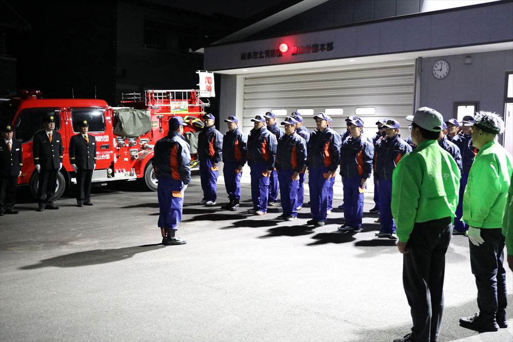岐阜市消防団において、令和7年の年末特別夜警がスタートしました。岐阜市北消防団 鷺山分団の皆さんも、12月27日(土)~30日(火)の4日間の夜間に、鷺山校区内をポンプ車による警戒パトロールにあたっています。
