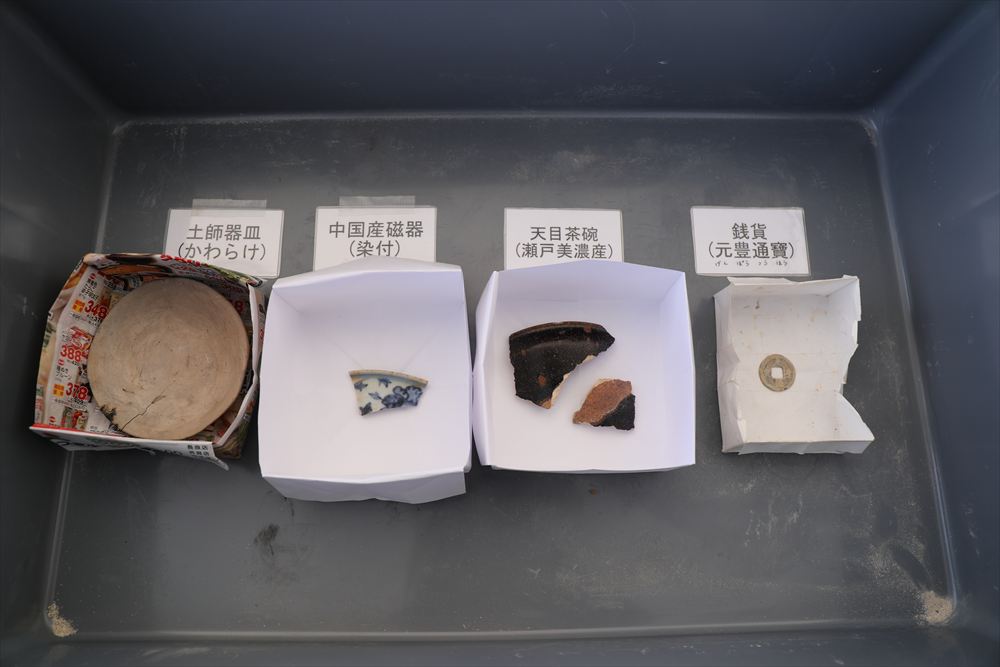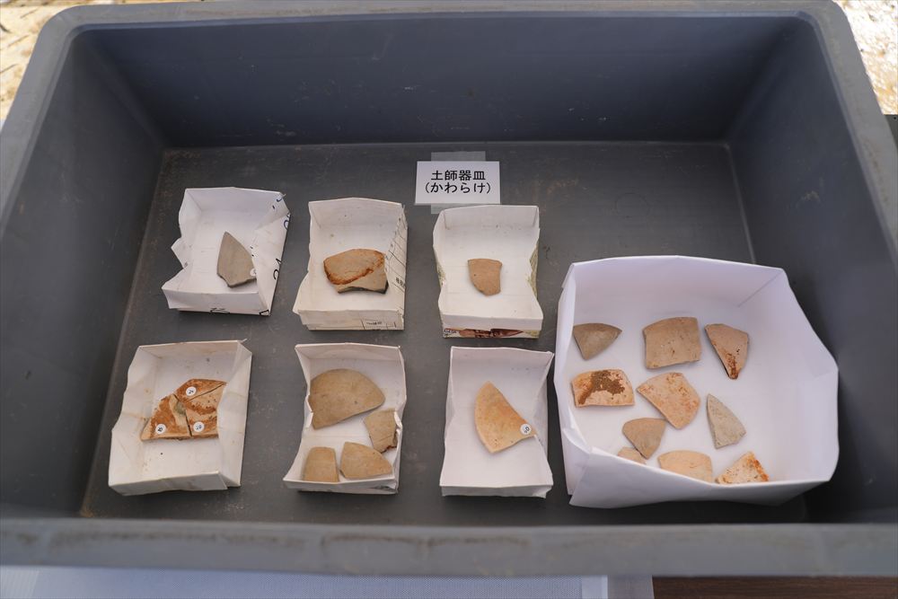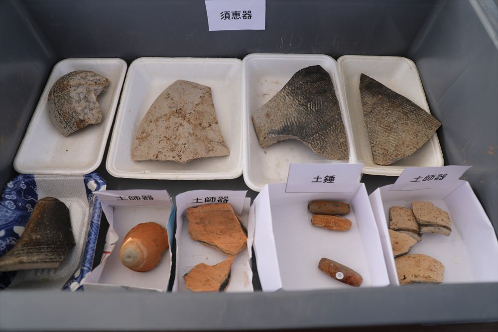 発掘調査で出土した陶器なども展示され、多くの皆さんが実物を確認されていました。