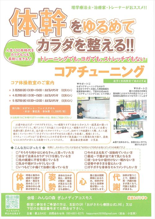 体幹をゆるめてカラダを整える!!(令和8年3月25日、4月29日、5月27日開催)