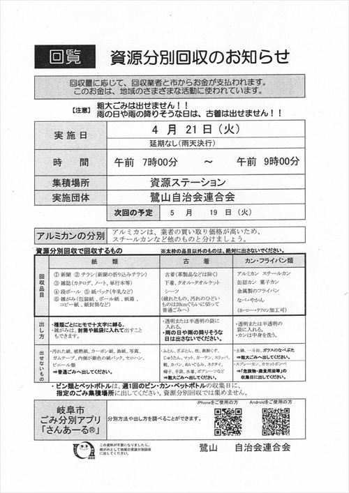 資源分別回収のお知らせ(令和8年4月21日開催)