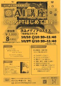 AI講座 ChatGPTはじめて講座!(令和7年10月10日、27日開催) >