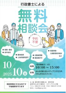 行政書士による無料相談会(令和7年10月10日開催) >