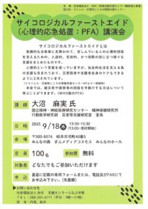 サイコロジカルファーストエイド(心理的応急処置:PFA)講演会(令和7年9月18日開催) >