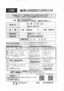 資源分別回収のお知らせ(令和7年10月21日開催) >