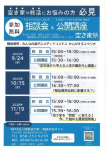 相談会&公開講座 空き家塾(令和7年9月24日、10月15日、11月19日開催) >