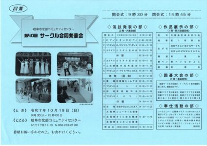 岐阜市北部コミュニティセンター 第40回 サークル合同発表会(令和7年10月19日開催) >