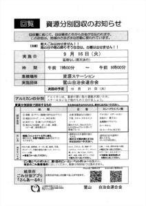 資源分別回収のお知らせ(令和7年9月16日開催) >