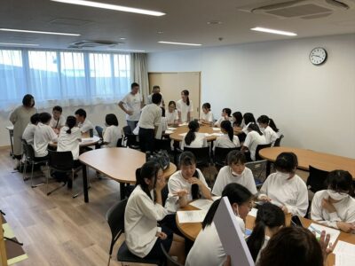 青山中学校の美術部の生徒の皆さんと一緒に竹灯籠の作品の制作に取り組みました。 >